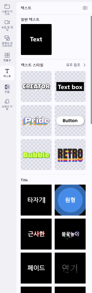 자막같은 텍스트를 넣고 싶으면 사용자미디어 아래쪽의 텍스트 확인