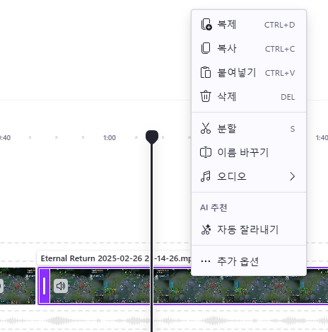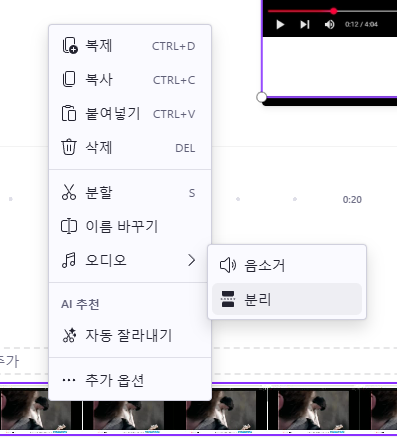 미디어 우클릭 > 오디오 > 분리를 눌러주면
