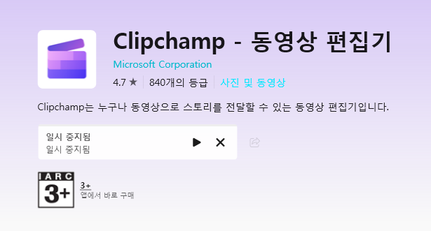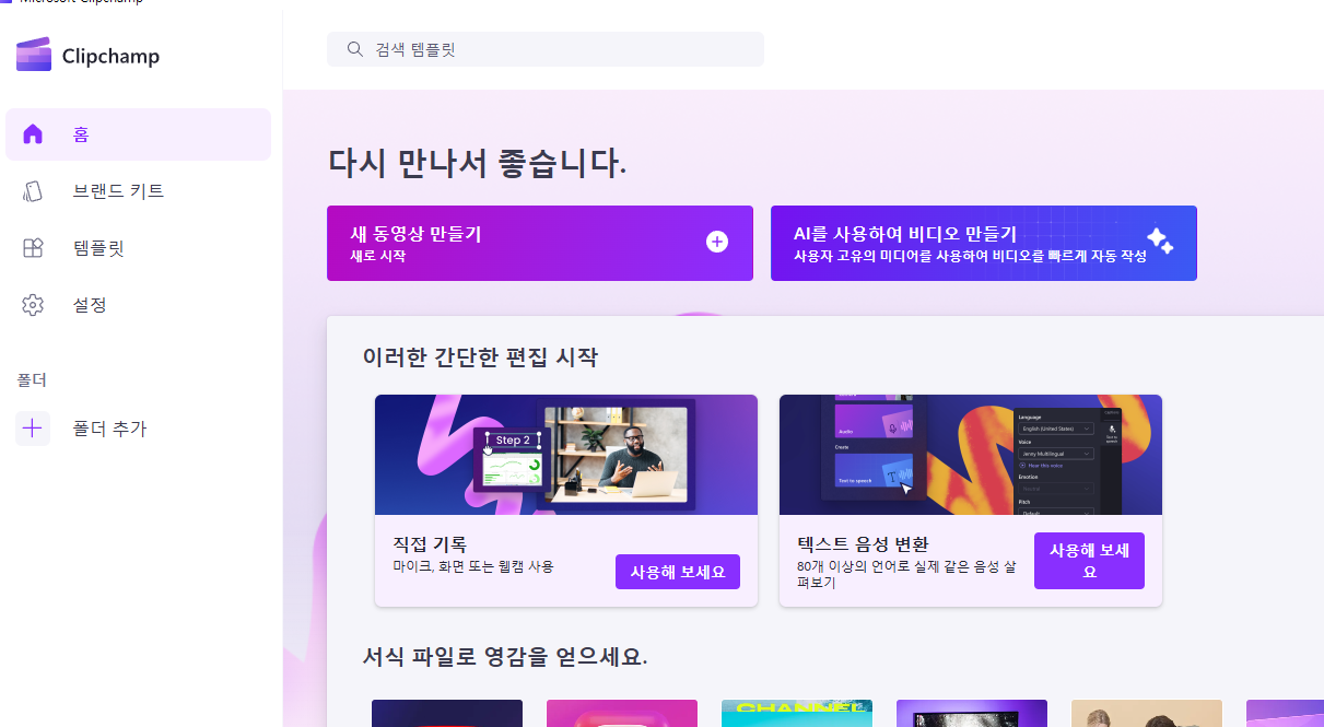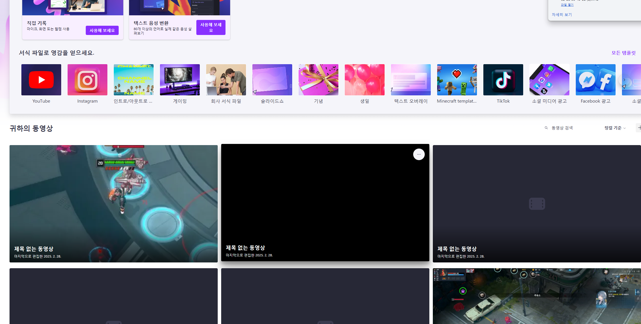 본인이 만든 편집물은 홈에서 다시 편집할 수 있음